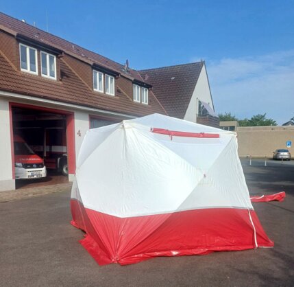 Die Freude in der Wehr ist riesengroß! Das Zelt hilft uns künftig, an der Einsatzstelle auch bei schlechtem Wetter geschützt unsere Einsatzkleidung abzulegen und uns umzuziehen – ein wichtiger Beitrag zur Einsatzhygiene und Sicherheit unserer Kameradinnen und Kameraden.