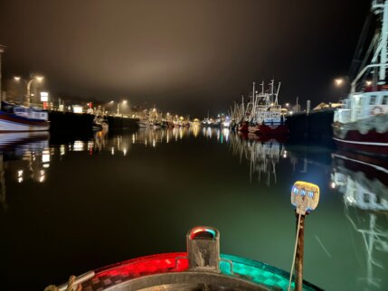 Der Ausbildungsdienst am Abend des 4. November 2024 fand ebenfalls großen Zuspruch. Die Einsatzkräfte bearbeiteten vier verschiedene Übungsszenarien am Büsumer Hafen. Die Drehleiter (DLAK) setzte zunächst das Mehrzweckboot "Florentine" ins Hafenbecken, wo die Bootsführer die Handhabung des Bootes in der Dunkelheit praktisch erprobten. Anschließend wurde ein Löschangriff mit dem Wasserwerfer der Drehleiter durchgeführt, bei dem das Tanklöschfahrzeug (TLF) die Wasserversorgung über einen Faltbehälter sicherstellte. Diese Methode erwies sich als äußerst effizient, besonders bei hohem Löschwasserbedarf.